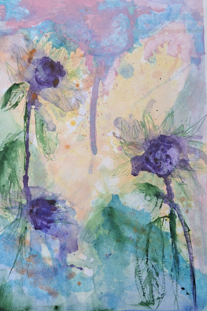 Olemuselt olen olnud impulsiivne, pigem ekspressiivse maali viljeleja. See väljakutse oli esimene aeglase maalimise protsess. Suutsin nautida. Teed ühe kihi ja see seisab Su silme all nädal aega. Käid mööda ja näed iga kord oma tööd erinevalt kuni tuleb mõte ,mis suunas selle vabastava tehnikaga edasi liikuda. Peale esimese, kollase kihi , kallamist tunnistan et olin kinni kinnisidees. Nägin paberil päevalille peale esimest kihti. See võis aga tulla ka sellest, et mu sees mitu kuud küpseb (augustist alates) õlimaali idee päevalillest ja võimalik, et mu töö kannatas selle all ,et päevalille teematikasse kinni jooksin. Aga oli ka hetki kus kinnisideest lahti lasin kui tulid mulle mitteomased värvitoonid ja värv liikus sinna kus tema tahtis . Peaksin proovima ehk veel-päevalillevabalt Vabastav tehnika Aitäh!”